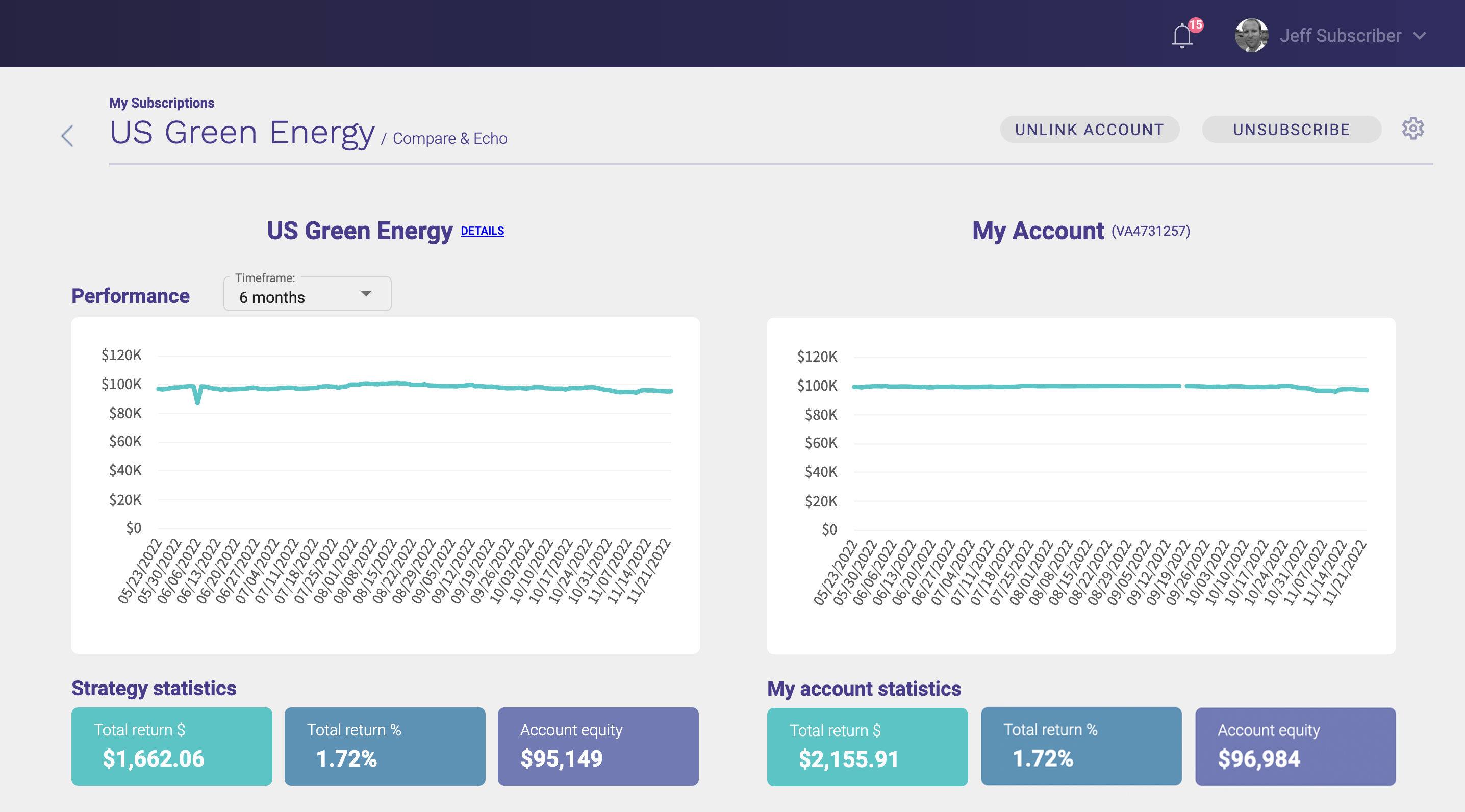 Subscribe to the strategies of professional portfolio managers with no high capital minimums, no contracts, no long term commitments.
