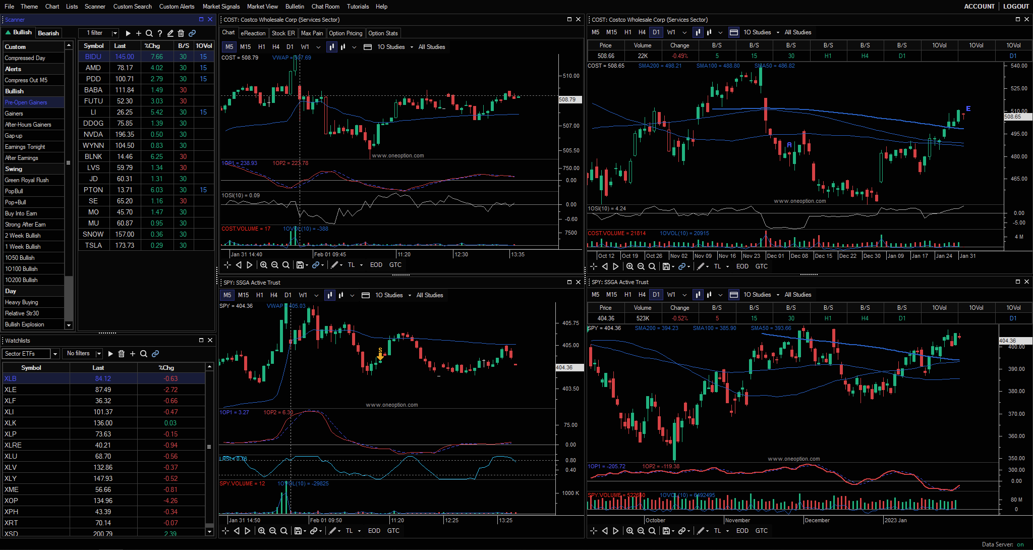 OneOption’s suite of tools is built to trade Relative Strength & Weakness. With us you can trade stocks, options and futures while learning our systematic trading approach. We’ll teach you what it is, why it works and how we trade it with our trading software
