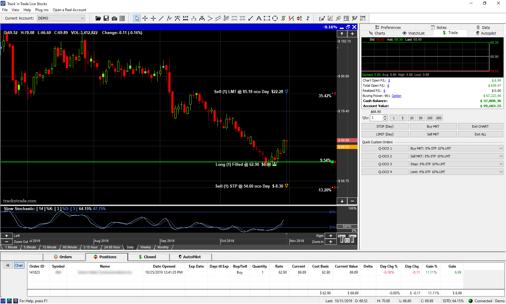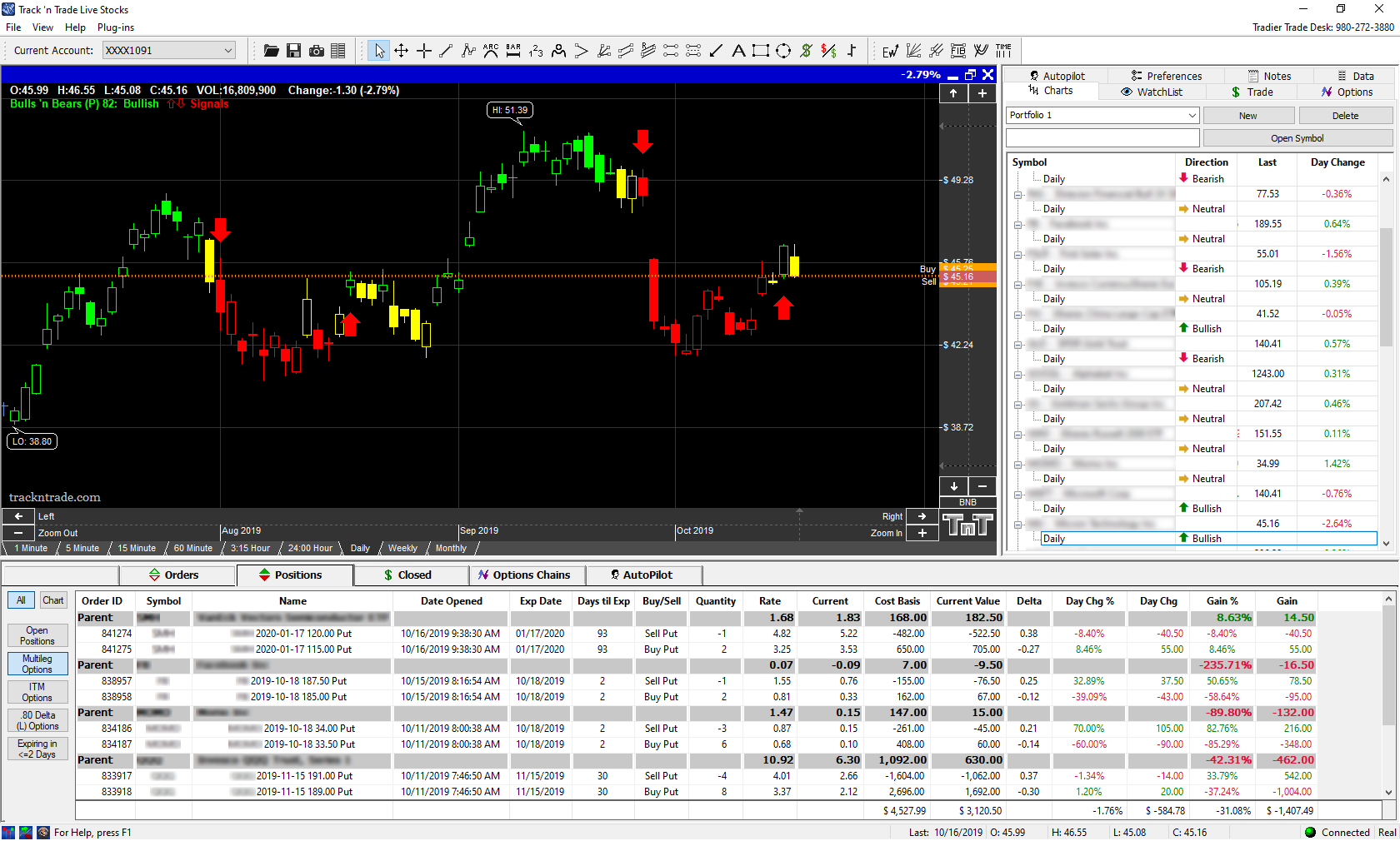 Track 'n Trade Live Stocks & Options is the award winning1 trading platform designed for the visual investor. This full featured system enables you to go from idea to trade seamlessly with its unique on-screen order placement and positions display.